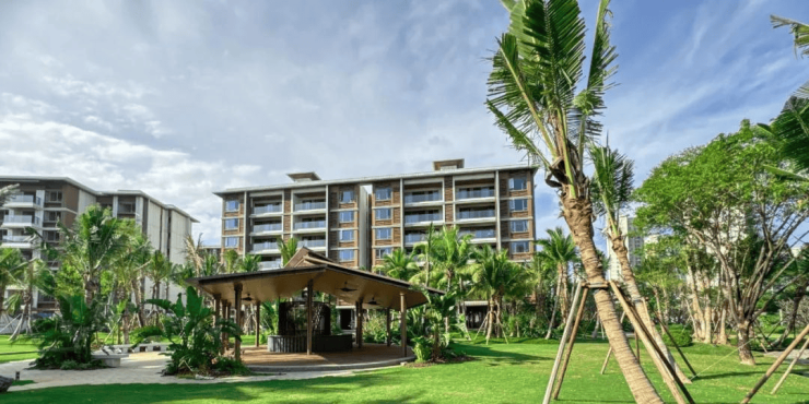 组团内曲折蜿蜒的景观轴线串联起各个组团庭院,舒适自然的花园空间,热带风情的植被设计,营造优雅舒适的海岛热带度假风情,打造高品质人居生活环境。