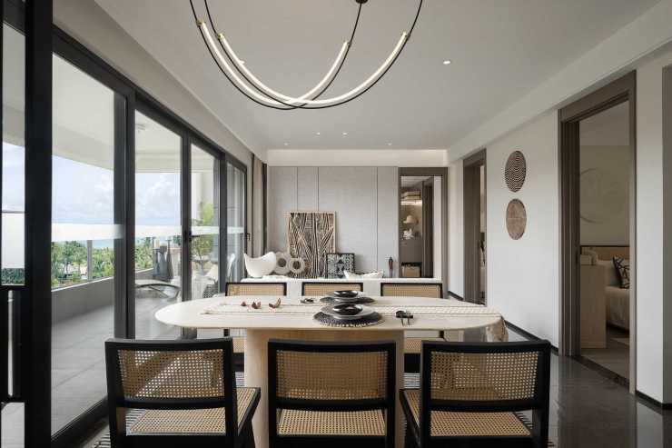 6.8-7.8米阔绰观景阳台,最大进深约2.8m,用自然装扮家的风景;约10.5米宽南向一体化客餐厨横厅,宽容生活缤纷时光。三房两卫,悠享度假时光。
