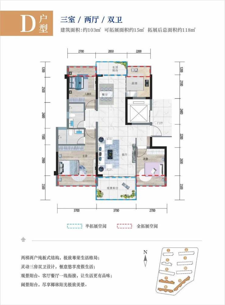纯板式「全明」结构,南北通透