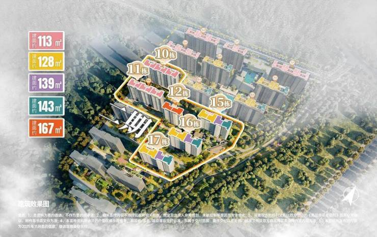 在一期建面约113㎡、128㎡、143㎡的基础上,二期增加了建面约139㎡和167㎡两种户型,选择面更广。