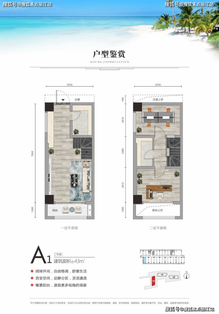 3、挑高5.4米,空间灵动百变,户型方正,层层采光,观景阳台可看小海