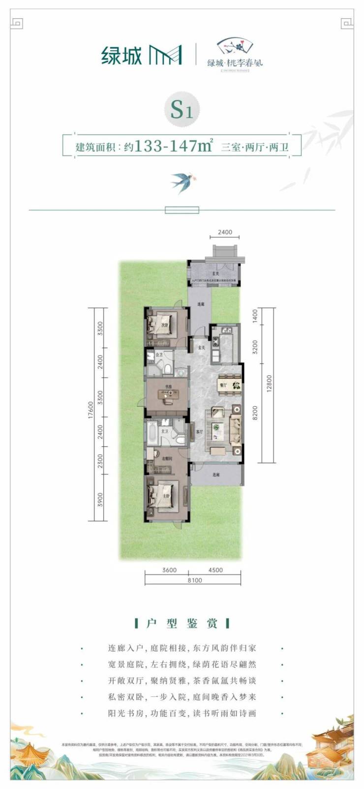组团园林空间,在设计上借用大文豪苏轼诗句中“思、绮、逸、翠、雅、轻、蕴、澄”等意境,打造“一心两区六巷八园”、“三进归家礼序”,生活其间犹如诗画中穿行。