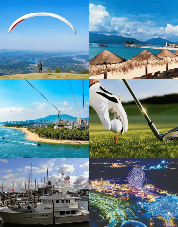 分界洲岛、蜈支洲岛、南湾猴岛、清水湾高尔夫球场、游艇码头、滑翔基地、亚特兰蒂斯水上乐园、海昌不夜城等多个旅游度假区