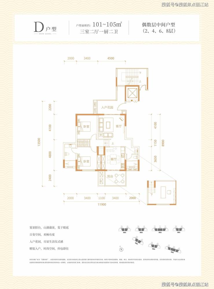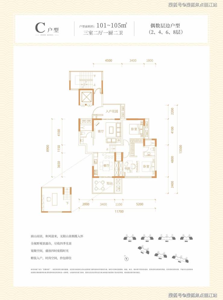 户型:约101-105㎡三居室