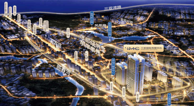 三亚国际传媒中心位于三亚主轴迎宾路,眦邻东岸单元总部经济区,目前已有10家世界500强落子于此。IMC云+总高度约170米的超高地标建筑,涵盖奢享酒店(规划中)、精英俱乐部、阔景平层、城景SOHO、精品沿街商业等多元业态的垂直综合体。