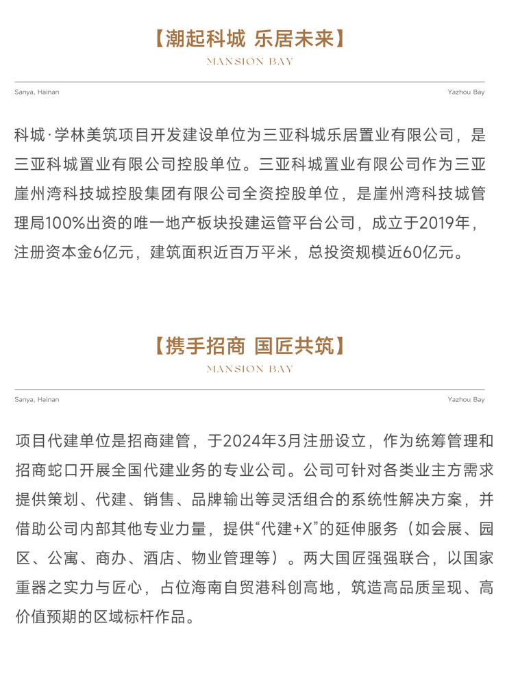 三亚崖州湾科技城控股集团有限公司下属三亚科城置业有限公司投资,招商蛇口三亚公司建设的科城·学林美筑项目已完成1、3号楼主体结构封顶。
