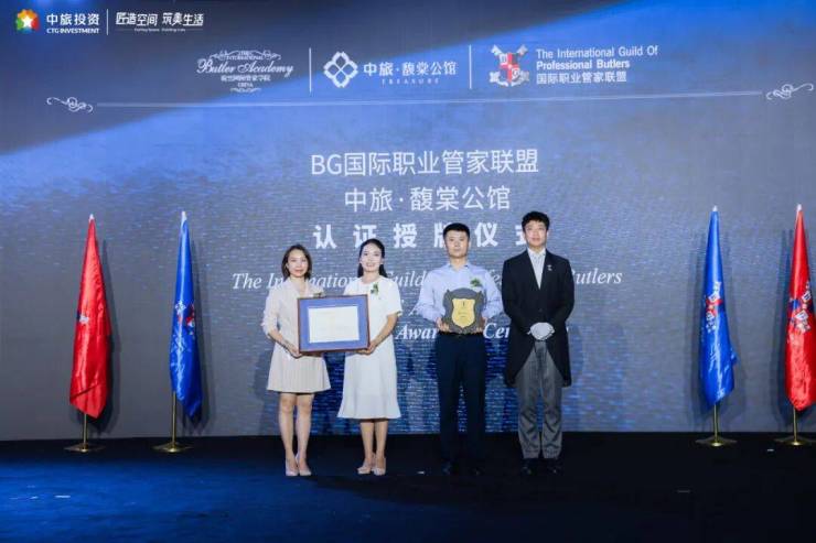 发布会上,BG国际职业管家联盟认证官为中旅·馥棠公馆颁发了联盟授牌,象征着双方将在服务理念、专业标准及卓越体验等方面展开深度合作,共同推动高端物业服务的新篇章。