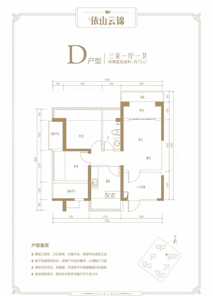 三亚依山云锦度假山居,板塔建筑巧妙布局,栋栋半山瞰城,通风采光视野开阔,让每一户都能享受负氧离子的呵护。三亚停建80平以下小户型商品住宅,依山云锦建面约52-61㎡山居美寓,更显难能可贵。精细利用每一寸空间,精质打造每一个细节,精选用材用料,如此精寓良园,犒赏您尊贵不凡的人生!