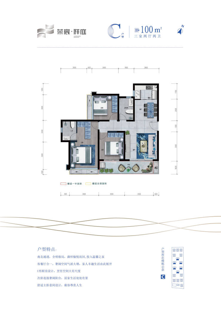 项目产品分为三类五个户型(90㎡户型2个,100㎡户型2个,120㎡户型1个),产品整体设计方正,最大化增加产品的得房率及使用率,功能布局合理,动线清晰。