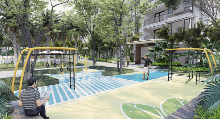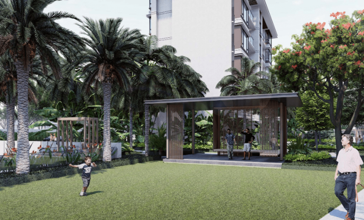 25870㎡社区绿地搭配 37084㎡景观面积,打造 “林与热带、海与海岛、山与涧、浅滩与海岛” 四大主题园景。椰林掩映、绿意盎然,漫步社区如同穿梭在热带秘境,每一口呼吸都饱含鲜氧。