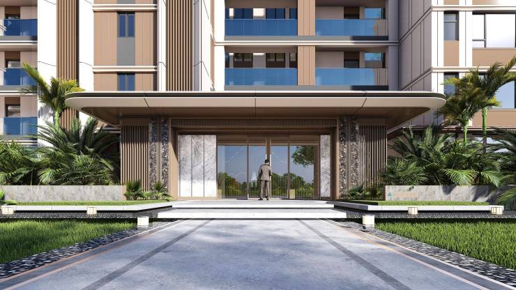 建筑顶层飘檐、首层挑檐、山墙等处均采用铝板材料。铝板工艺不仅线条简约精致,还经久耐用,让整体建筑更加挺拔,使立面构成更有韵律感、节奏感,同时金属质感也让整体建筑品质更显精奢。