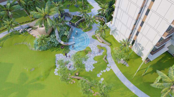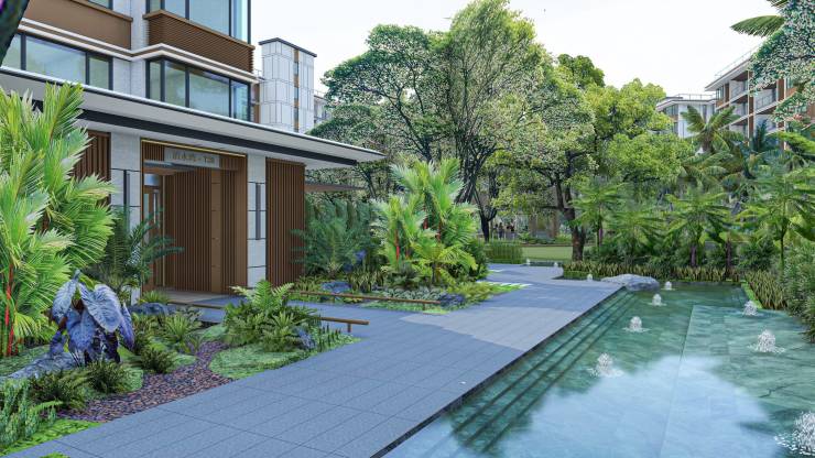 组团内曲折蜿蜒的景观轴线串联起各个组团庭院,整体简洁大气的氛围,舒适自然的花园空间,热带风情的植被设计,营造优雅舒适的海岛热带度假风情,打造高品质人居生活环境。