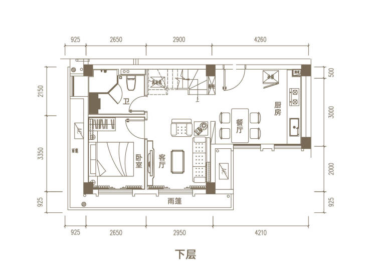 平墅:B2户型三房两厅两卫:建筑面积约110㎡