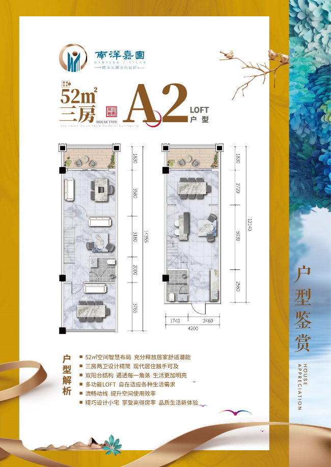 A2户型 LOFT 约52㎡ 三室两厅两卫