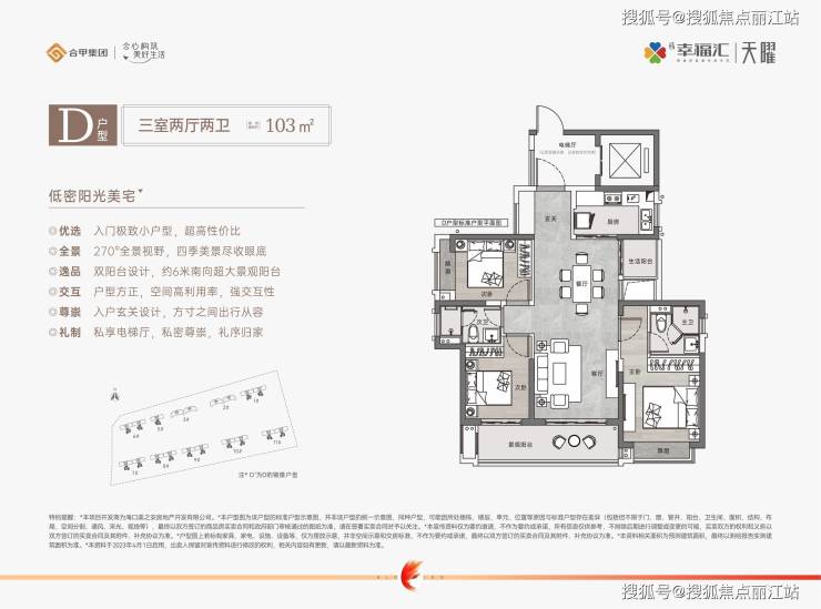 深谙现代人的居住需求,深刻洞悉用户居住喜好,推出精致刚需小户型,定制建面约103-113㎡低密阳光美宅。