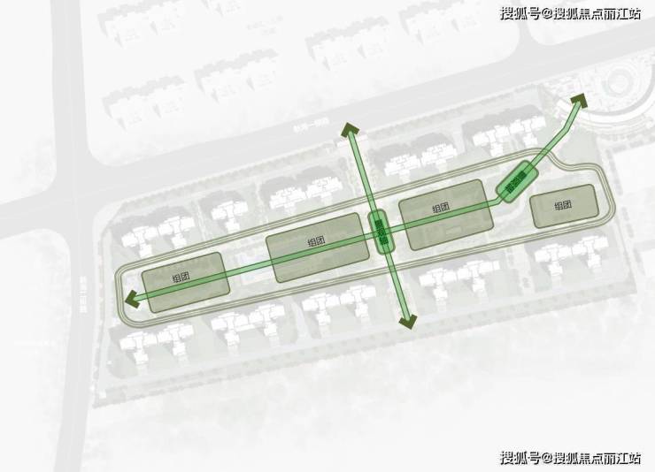 园区通过住宅楼栋围合形成东西向通廊庭院,打造“一环二轴多组团”的景观空间;“一环”是健康步道,连接各个景观区和休闲广场,每一次呼吸都是自然的馈赠;