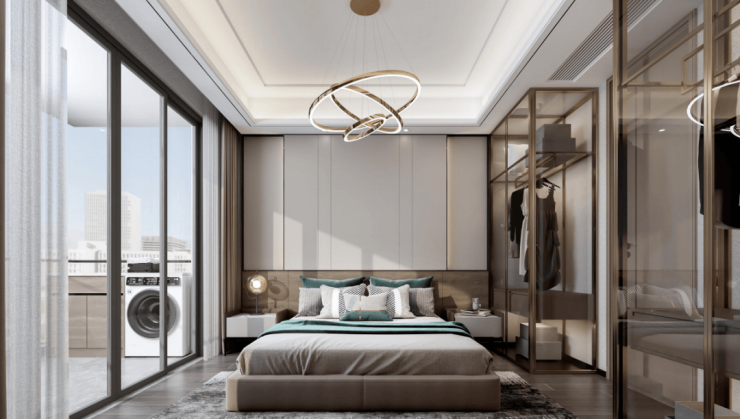 套房式主卧设计,自带独立卫浴、衣帽间等功能分区,设计舒适观景飘窗,让夕阳与晨曦在枕间悄然停落。