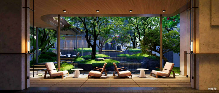 整体园林设计,以天人合一·自然共生的匠心手笔,采用更质朴的自然艺术美学度假景观呈现,融以“林隐会客厅、精神水院、度假泳池”等功能节点进行艺术化布局,口袋式主题花园园林规划,以“一带、两轴、多境”的花园结构铺陈,将300米林谷游园轴+180米水境游园轴及3大酒店式度假入口景致,沉浸时光,一步一景,打造山海自然与艺术共生的海居院落美学。