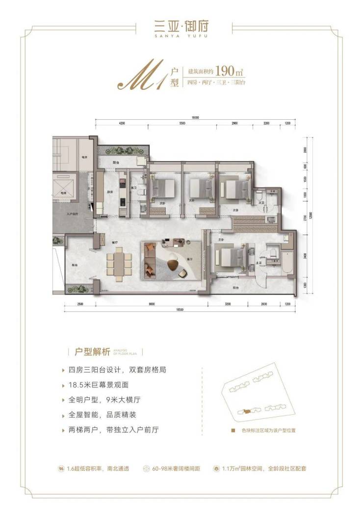 【产品面积】:161㎡、169㎡、190㎡大平层