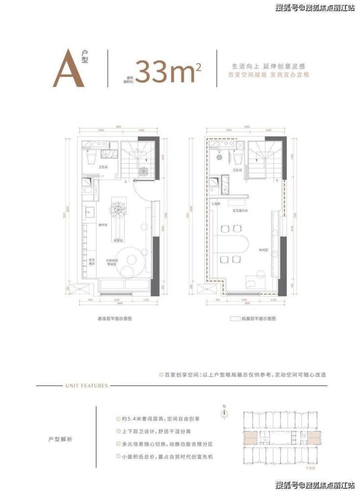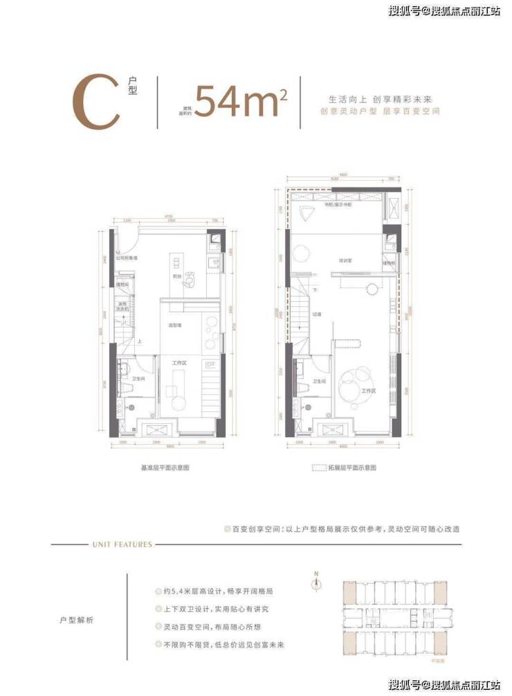 层高:5.4米挑高设计。买一层享两层,小空间,大世界