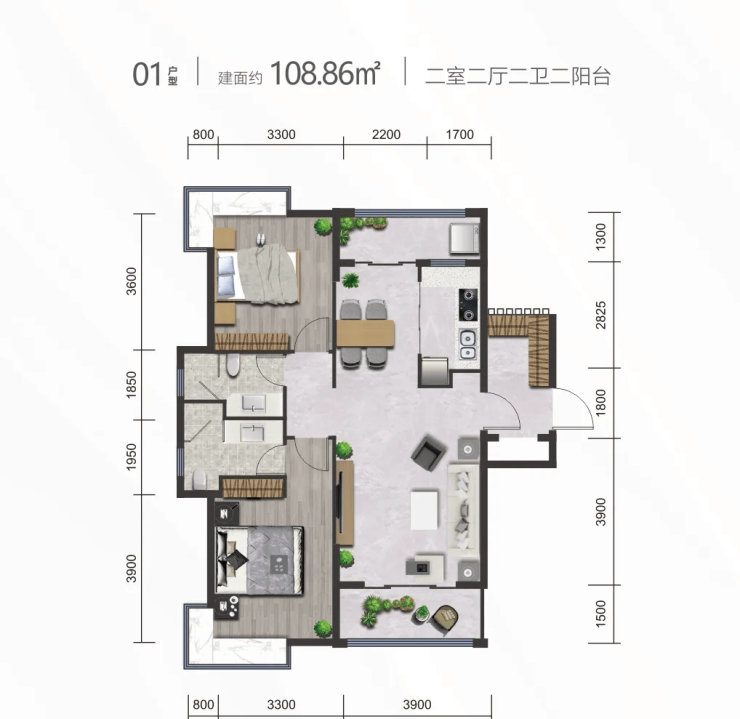 01户型丨建筑面积约108.86㎡