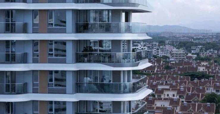 将白色的曲线元素沿用到住宅立面的设计,曲线形状的大阳台如层层海沫一般轻盈地漂浮在立面上,错层的阳台设计让立面也更加的灵动自由。