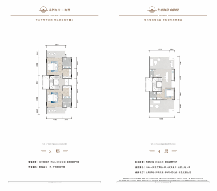 顶层约 46m²的揽景双露台与一层双庭院形成呼应,这才是真正“背山面海,有天有地”的生活。