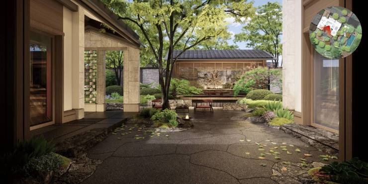 园林设计以杭州法云安缦为蓝本,师法自然、禅意幽远。悉心挑选 40 种热带特色植被,葱郁繁茂、四季繁花。更珍视原地块 4 棵百年古树,以此为核心景观节点,古木参天、岁月沉淀,与新植交相辉映,构筑宁静深邃、自然野趣的园林画卷,让每一步归家皆为穿越诗意秘境的悠然旅程。