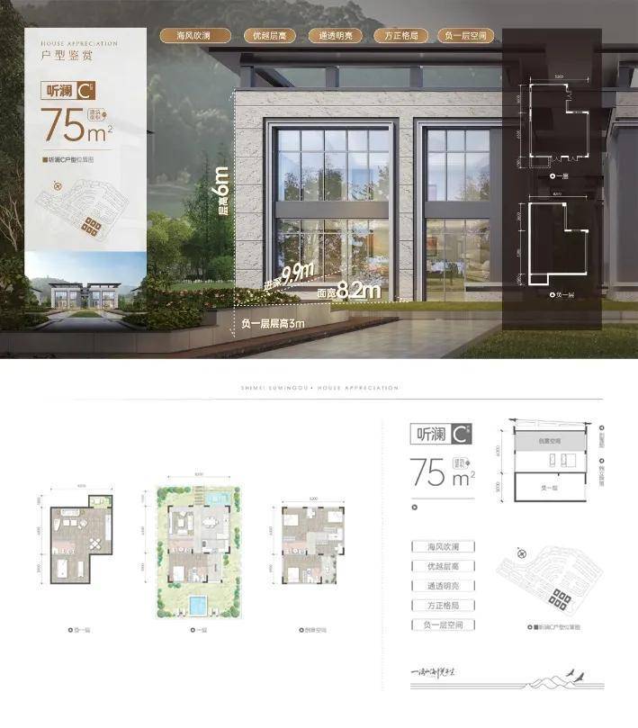 一期首推的是75㎡的牧云叠拼系列、75-150㎡的观海双拼系列、100㎡的拾光双拼系列,85㎡的望峯联排系列和75㎡的听澜合院系列,每户都享有极佳的景观面和超大的拓展空间,整体性价比很高。总价百万起,轻松入手海南自贸港的绝版山海资产。