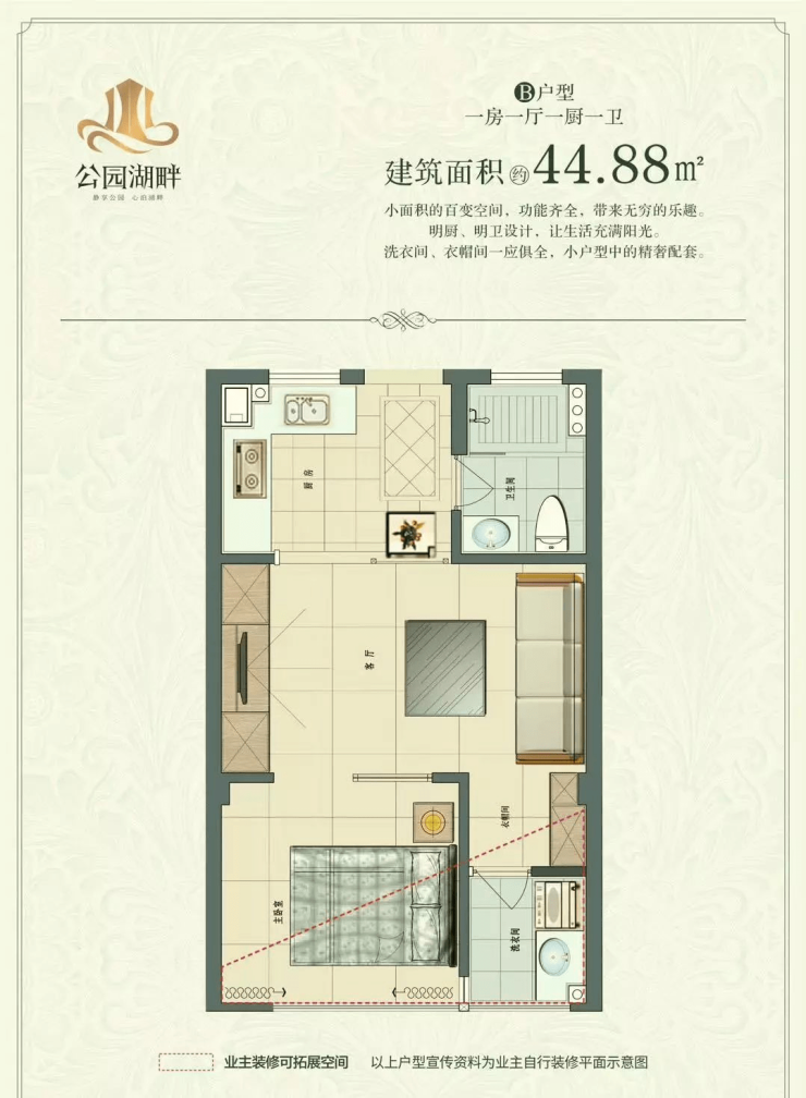 B户型 建筑面积44.88㎡一室一厅一厨一卫
