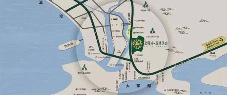 二十年,京海城酿一座鹿港溪山,北依凤凰岭,西靠白鹭湿地公园。毗邻大东海度假区,距离高铁站8公里、凤凰机场约15公里,距离轻轨站10公里,距海棠湾仅30公里,距亚龙湾20公里。