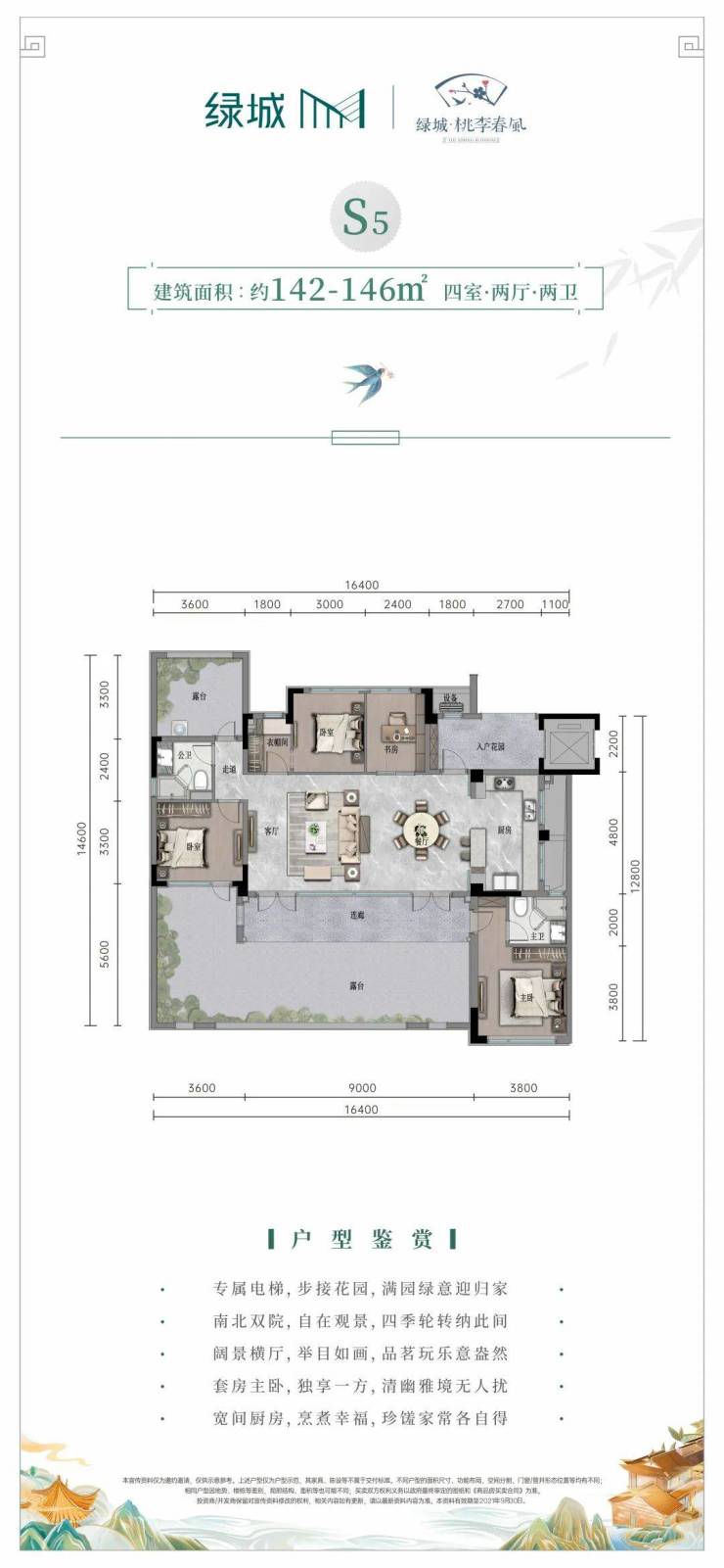 每家每户均享有阔尺庭院,一楼自带大庭院,在庭院里植一株杏花,便是归家的方向;二楼平层结构,以空中庭院,让天空及园景在院落里相逢;三加四楼复式结构,衔接诗意庭院,可品晨光熹微,可观夜幕星辰,梦田中的理想生活触手可及。