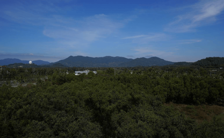 ②高尔夫球会B球场,以湖泊和小山地造景,集碧海、蓝天、绵沙、奇石、岛屿、椰林、溪流于一体,景色怡人,不同水平球手均可享受挥杆之乐;