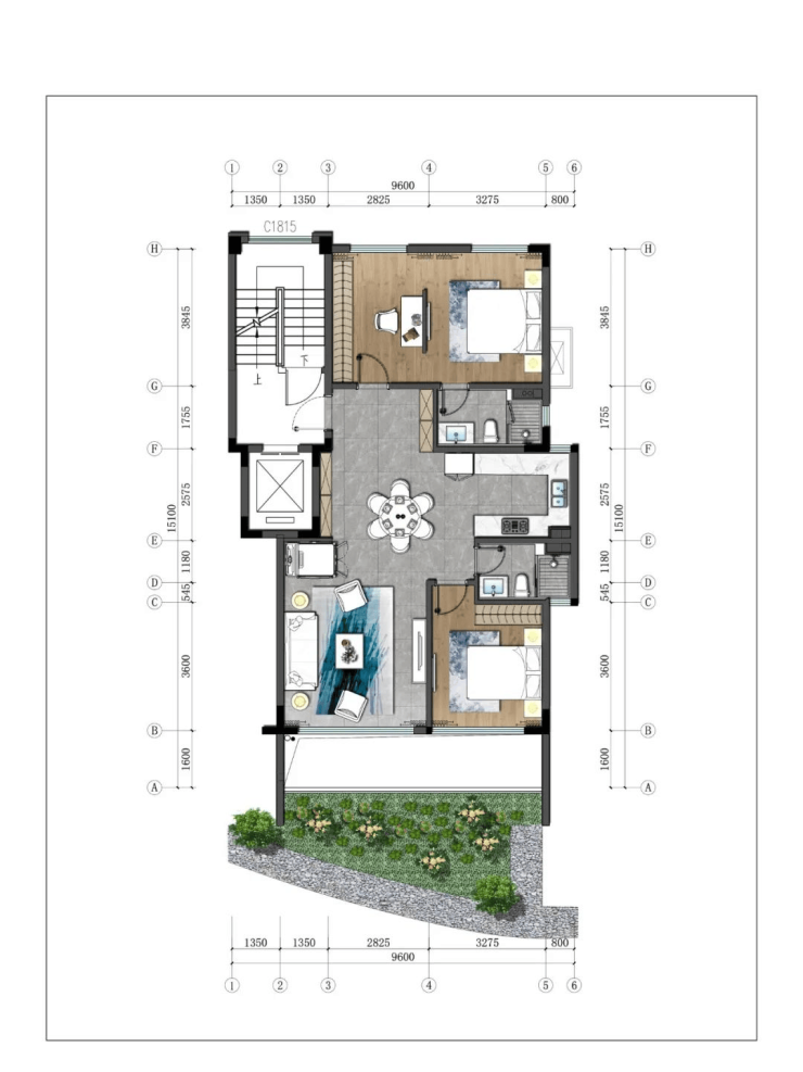 一层下叠 建面:100-110㎡ 四房三厅三卫(赠送花园➕一层地下室:层高4.9米)