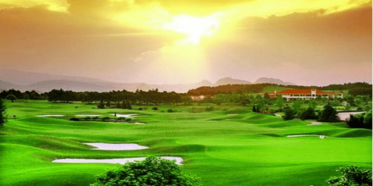 海棠湾神泉高尔夫球场神泉高尔夫球场占地面积为150公顷(2280亩),由两座均为72杆标准杆的18洞球场组成(神牛场和神泉场),总长度为7175、7442码。除36洞高尔夫球场外,还有40个打位的标准高尔夫练习场。