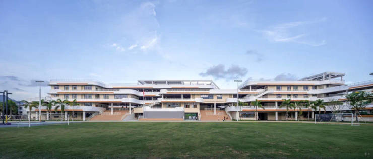 项目建筑深植本土,以“现代装饰派艺术(Art Deco)”的简洁几何线条为基底,勾勒出清晰利落的建筑轮廓,彰显质感,同时,设计灵感汲取于浪漫慵懒的南意大利度假风情,建筑加入中式元素,运用带有时间肌理的天然石材,搭配暖黄色涂料、深咖色格栅与雕花,为建筑披上了一层温润光泽,让空间满是惬意与松弛。