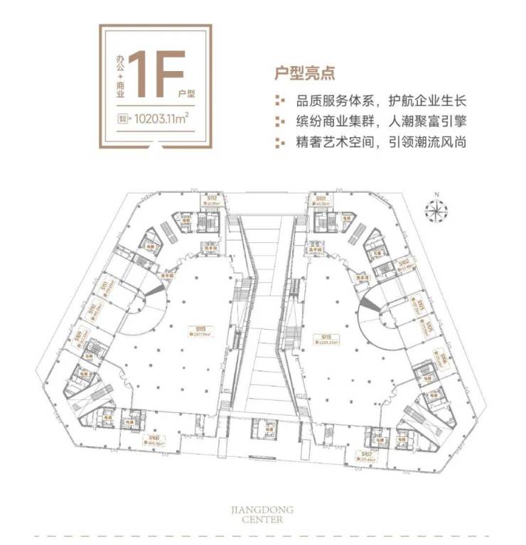 江东大厦,作为江东CBD中轴线上的封面CBD,与江东天地(在建中)无缝相连,将尽享江东天地的繁盛配套,也将会承接商业综合体带来的虹吸效应,进阶成为CBD繁华都会之芯,其价值未来不容小觑,成为众多企业办公的必需之选。