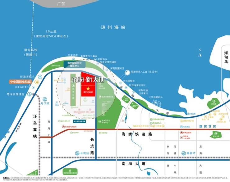 交通资源:滨海大道、海秀快速路、绕城高速、西线高速、动车海口站、轮渡南港