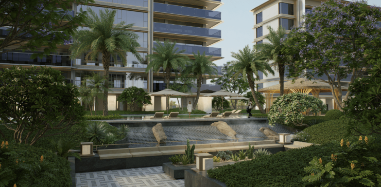 景观以“八景造园”为核心理念,将热带原生植被与东方造园手法相融。社区内规划溪谷花境、阳光草坪、叠石水景等八大景观节点,搭配凤凰木、三角梅等本土花木,四季有景、步步生趣。