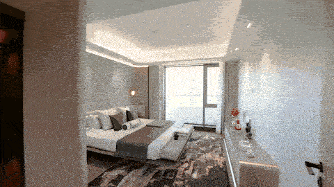 为了呼应游轮度假的空间风格美学,无处不在的弧形元素被运用空间中。突破传统的吊顶营造工艺,项目在客厅和卧室都采用了难度极高的GRG一次成型吊顶工艺,为业主打造出了一个独一无二的曲面圆弧吊顶,让室内空间具有层次感。