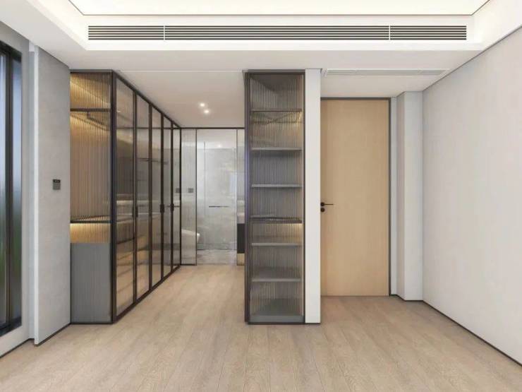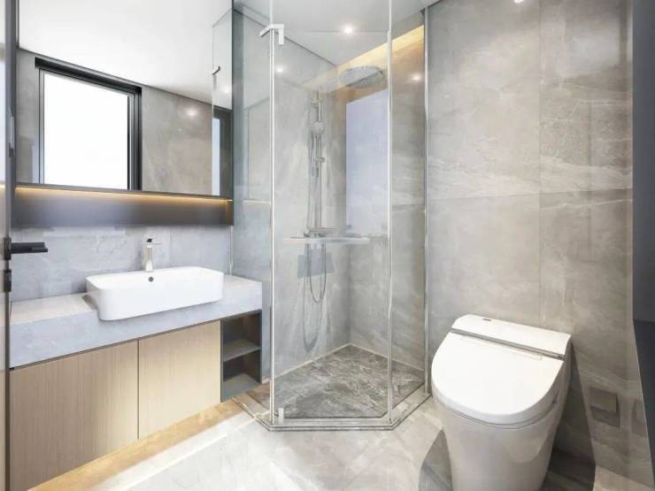 独立卫浴空间,借鉴了高端酒店的设计风格,采用相互独立的双台盆设计,彼此陪伴但又保持适度的距离。贴心配置智能浴缸,当夜幕降临之时,浴缸里来一次身心浸泡,静静眺望窗外的夜色,享受属于自己的片刻时光。淋浴房设计,摈弃臃肿挡水条,极窄边框的玻璃隔断,实现了空间通透感的最大化。严选天然石材墙面,淋浴屏地面抽槽工艺,每一个细节都沉淀着对精致生活的巧思。