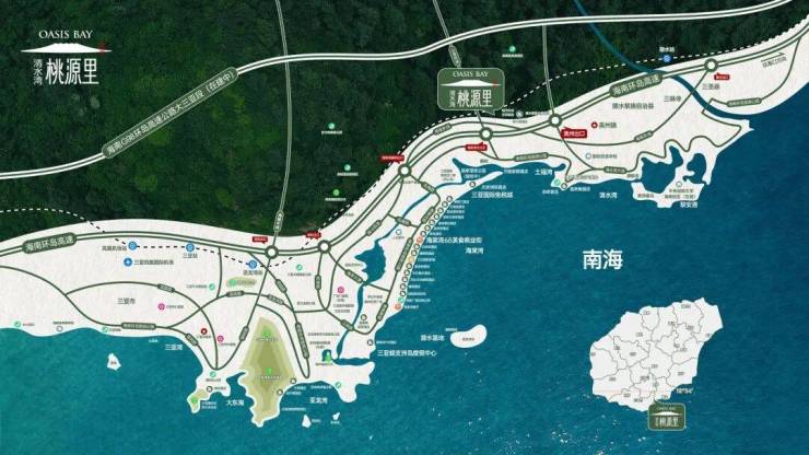 • 半小时度假生活圈:紧邻G98海南环岛高速,距离清水湾旅游度假区5公里,距离海棠湾约15公里。