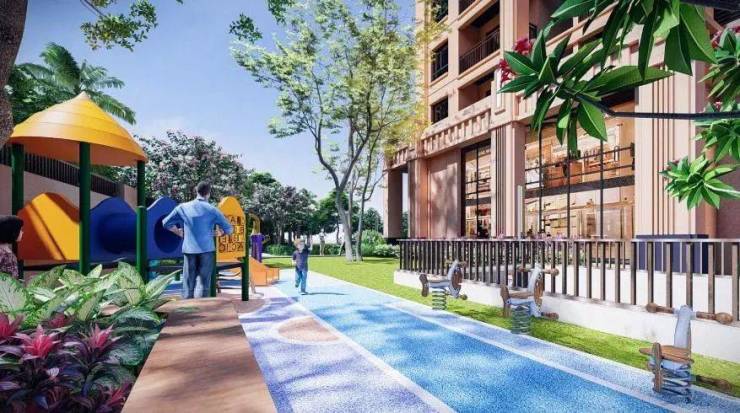 项目主体由北区一栋住宅楼、南区三栋住宅楼及两层商业裙楼组成,涵盖便利商超、餐饮等基本生活业态,以Art Deco结合热带滨海城市建筑风格精筑,形象大气典雅,品位现代时尚。