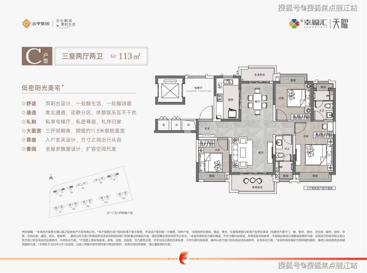 深谙现代人的居住需求,深刻洞悉用户居住喜好,推出精致刚需小户型,定制建面约103-113㎡低密阳光美宅。