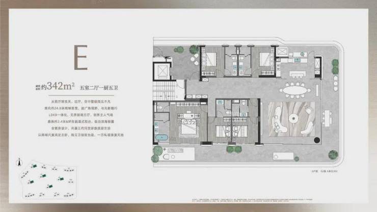 项目户型面积从约188-610㎡,全部为大平层设计,无入门级产品,确保了圈层的纯粹性和居住的舒适度。