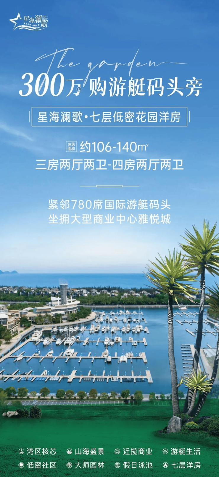 ——7层低密花园洋房,位于湾区C位,紧邻780席游艇码头、海上艺术中心,拥雅悦城商业中心,981首保健康医学中心、莱佛士酒店、高尔夫球会等核心度假配套环绕,百亿醇熟配套,全方位享受繁华海居。