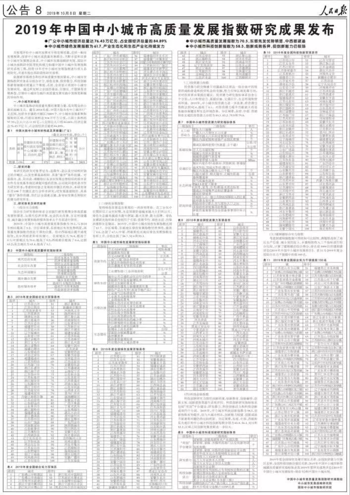 2019年中国中小城市高质量发展