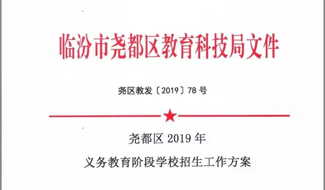 为深入推进依法办学,全面规范义务教育招生入学秩序,有效解决中小学择校问题,促进教育公平,根据《山西省教育厅关于做好2019年普通中小学招生入学工作的通知》(晋教基〔2019〕9号)、《临汾市教育局关于做好2019年普通中小学招生入学工作的通知》(临教基〔2019〕19号)和《临汾市教育局关于印发临汾市2019年义务教育阶段民办学校招生工作方案的通知》(临教基〔2019〕27号)精神,经研究决定,特制定本方案,请各校认真遵照执行。