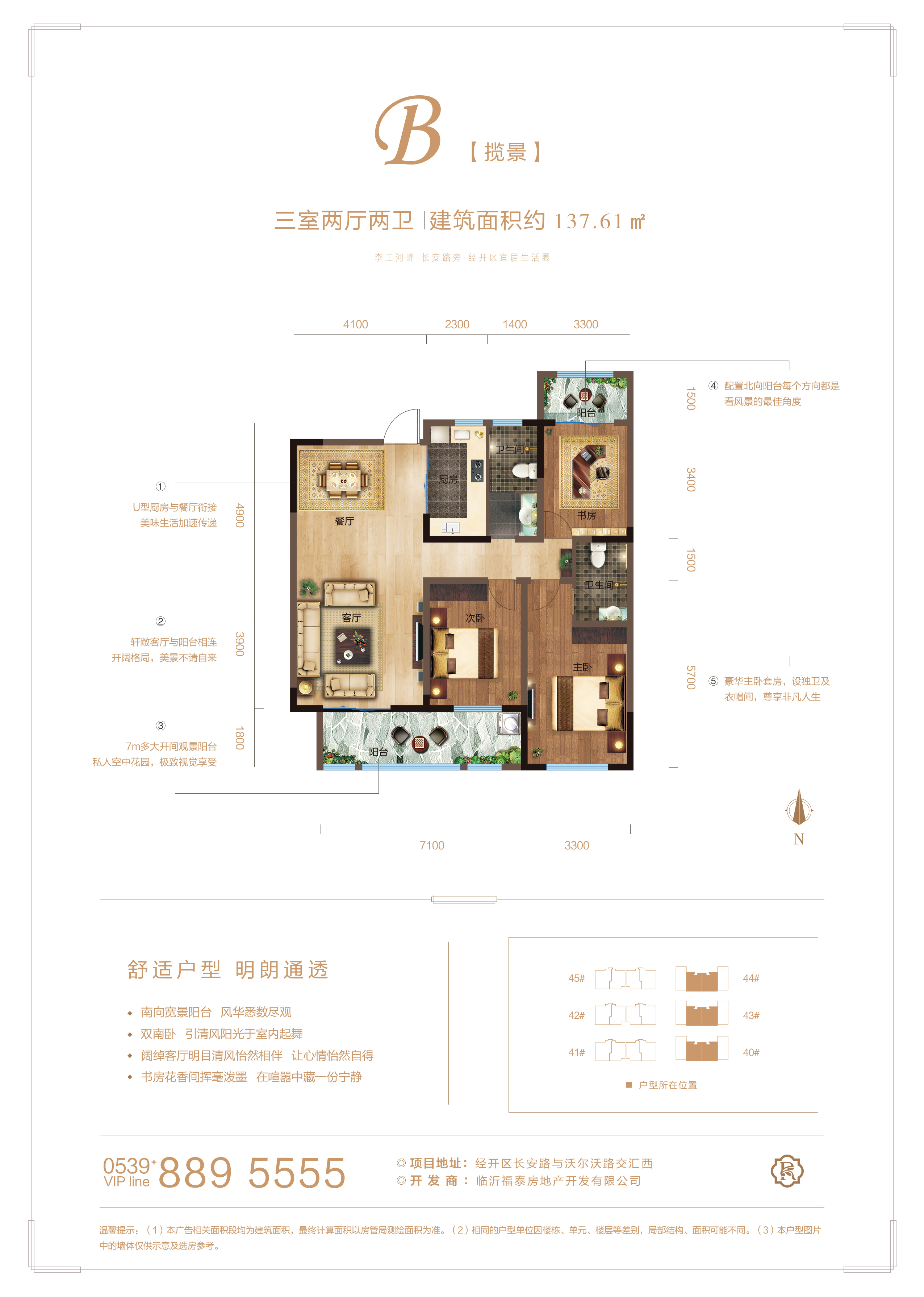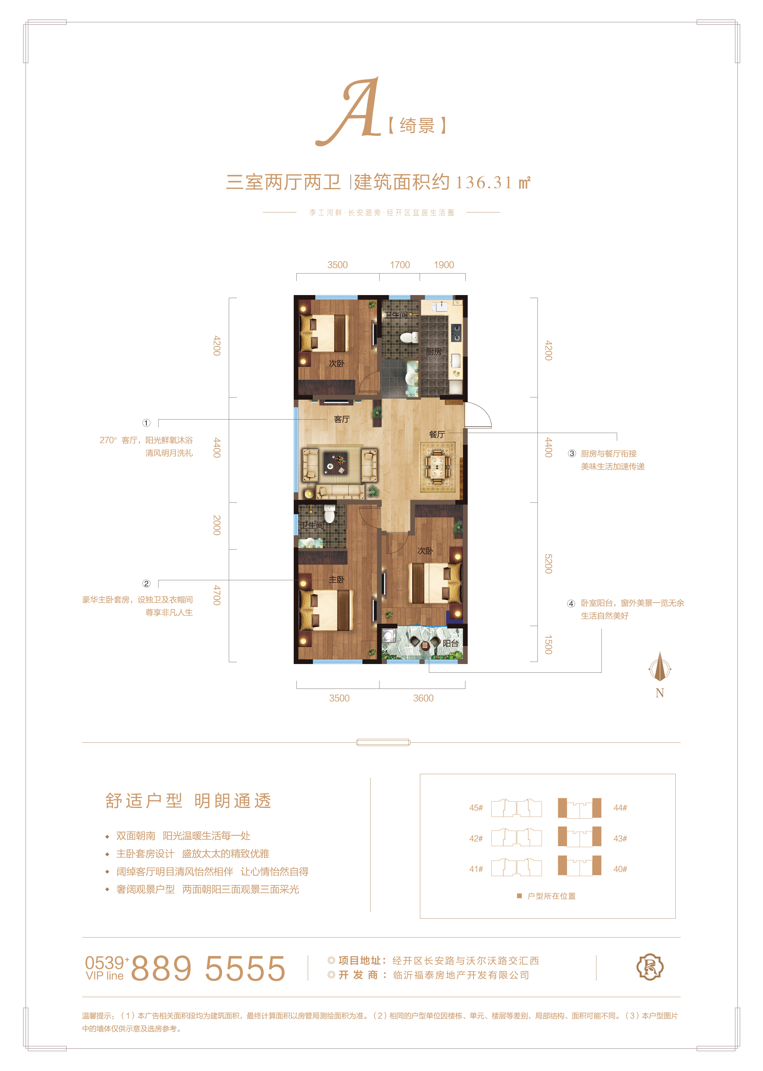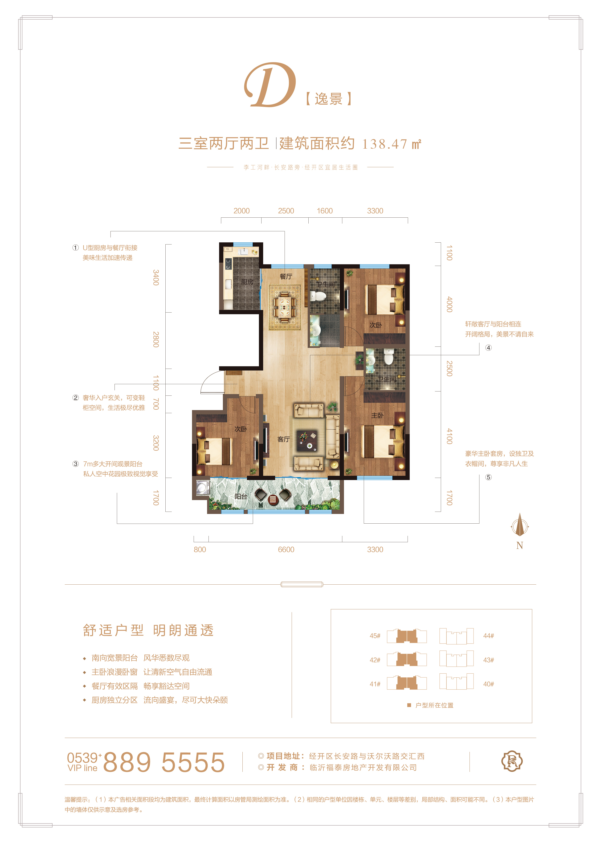 福泰御河湾由临沂福泰房地产开发有限公司开发建设,项目位于经济开发区,长安路与沃尔沃路交汇西100米路南,沿李公河而建,享受市政、湿地公园、综合体等多元配套,集萃城市资源精华,未来前景可期!