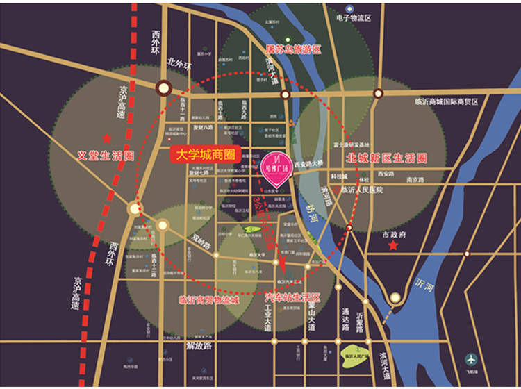 哈佛广场项目位于聚财七路和滨河大道交汇处,滨河片区山东医专校内,距离亚洲最大的汽车站仅三分钟车程,京沪高速临沂口仅需五分钟车程,交通方便快捷。